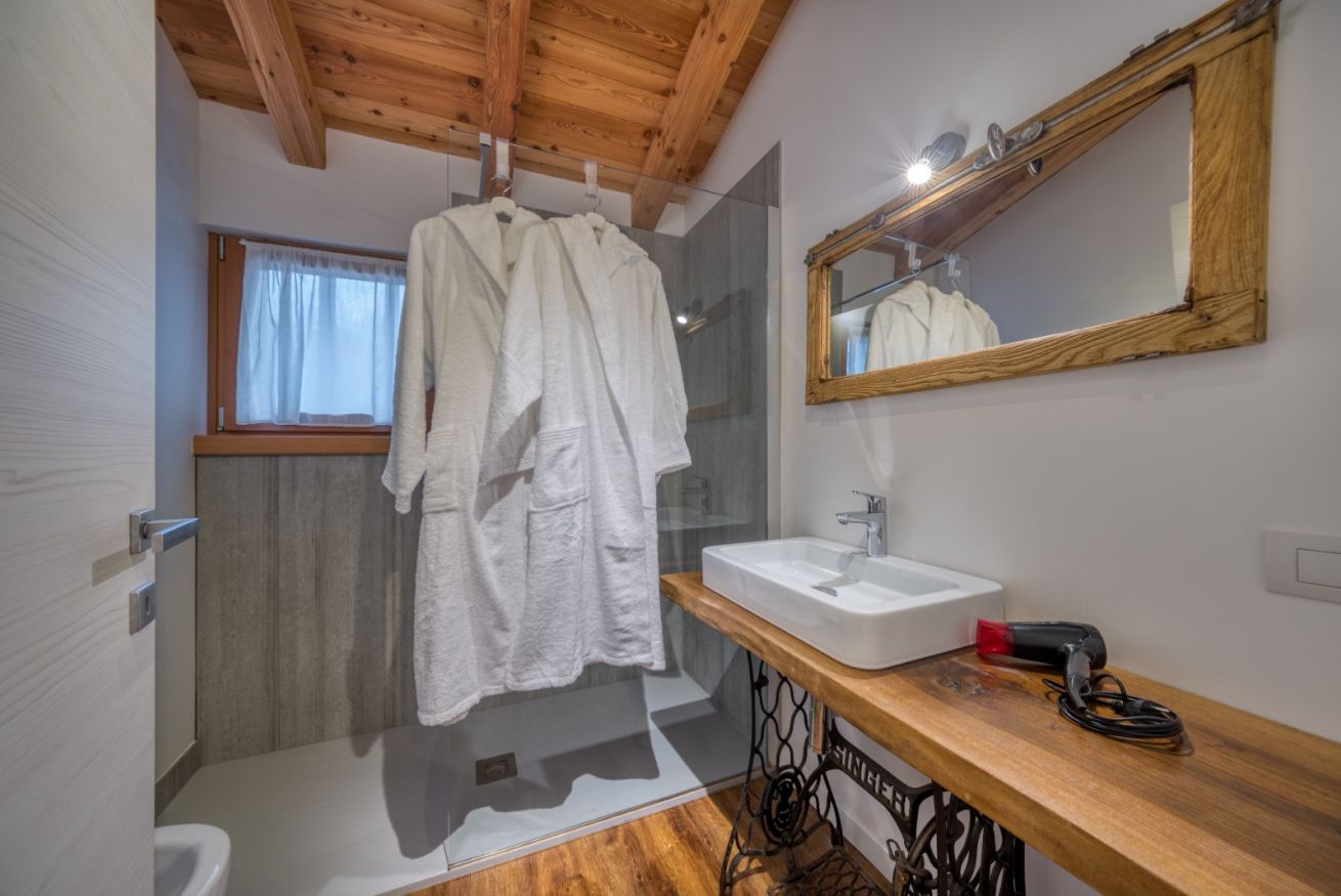Bungalow indipendente di 50 m², realizzato recentemente in legno e certificato in classe energetica A+. Dispone di due camere da letto per un totale di 4 posti letto, un bagno con ampia doccia in cristallo e una cucina attrezzata con lavastoviglie, piano a induzione, frigorifero con cella freezer, microonde e bollitore. Il soggiorno è dotato di Smart-TV divano, caminetto a legna e ampia terrazza attrezzata con tavolo e sedie. È garantito un posto auto/moto coperto nelle immediate vicinanze del bungalow. All’esterno, nel giardino privato, è disponibile un tavolo con panche e una vasca idromassaggio esterna riscaldata con vista panoramica sul Villaggio Val Molini. Le sedute anatomiche e l'opportunità di regolare autonomamente i getti pneumatici nonché l'illuminazione cromatica rendono l'esperienza di relax unica. La vasca idromassaggio è ad uso esclusivo.