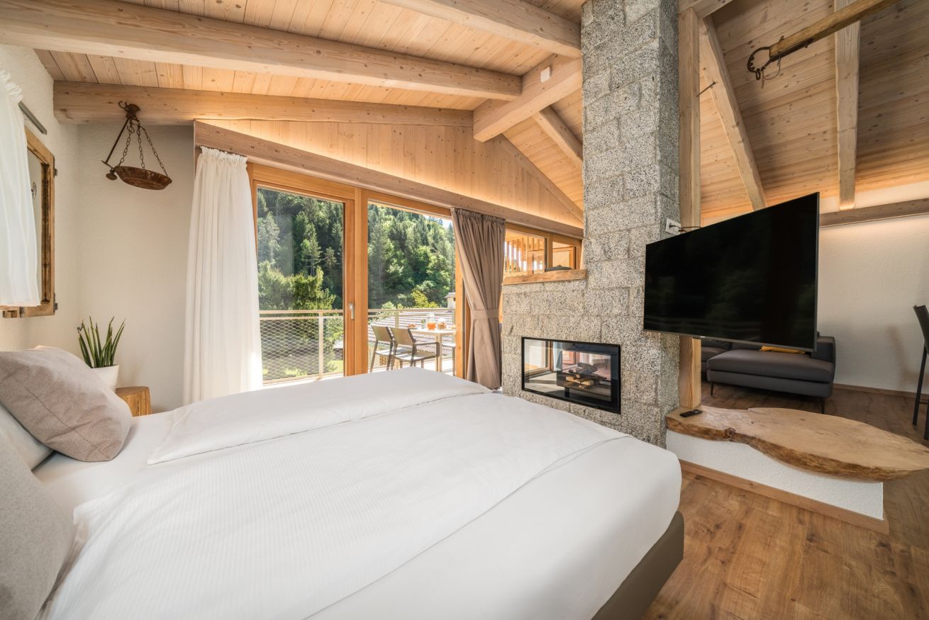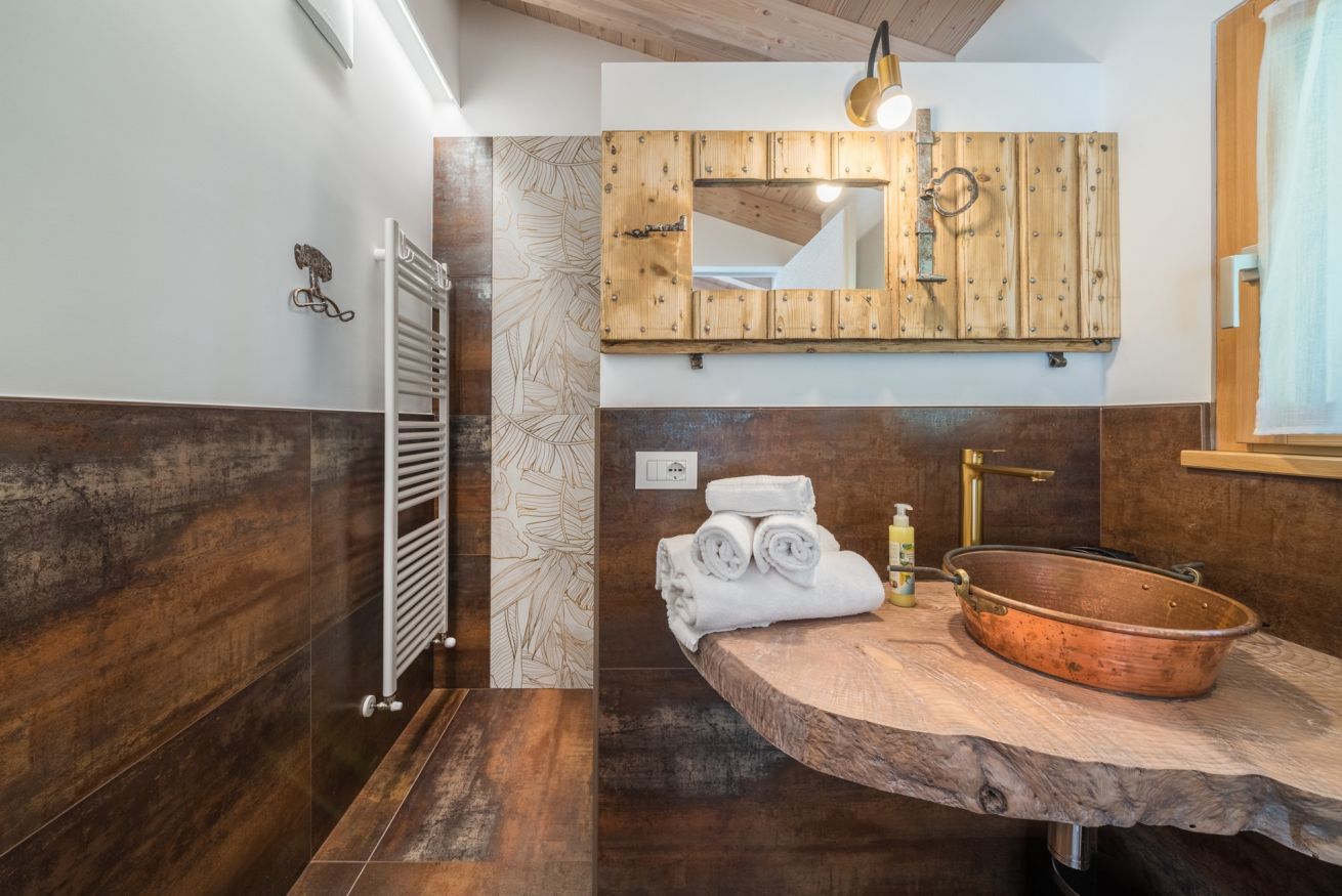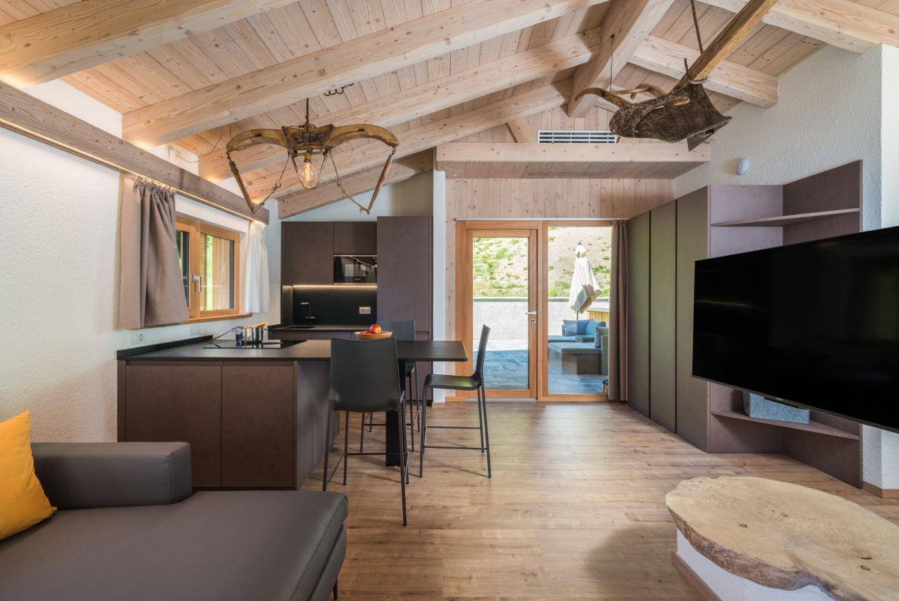 Casa indipendente di nuovissima costruzione, struttura in legno appartenente alla classe energetica A+. L'ambiente open-space trova nel caminetto a legna bifacciale il suo punto focale. Attorno a esso ci sono il letto matrimoniale (per un totale di 2 posti letto) e il divano con penisola. La cucina è dotata di piastra a induzione, forno microonde, lavastoviglie, bollitore, frigorifero con cella freezer e stoviglie. Nello spazio dedicato al soggiorno c'è una Smart TV con impianto satellitare integrato. Nel bagno con doccia sono presenti: asciugamani, accappatoi e asciugacapelli. Sull'ampio balcone con vista giardino c'è un tavolo con sedie. Per gli ospiti a disposizione un posto auto o moto coperto privato e un deposito biciclette chiuso.
